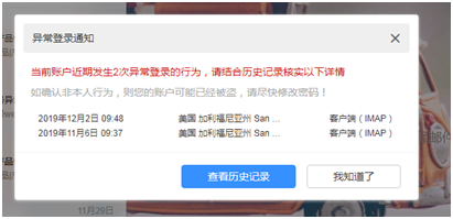 或點(diǎn)擊“查看”企業(yè)郵箱收到異地登錄提醒
