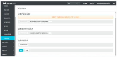 2. 管理員賬號(hào)開啟IP登陸限制功能,設(shè)置信任IP白名單或者IP黑名單