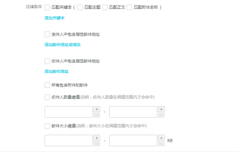 4.過濾條件:設置后,被監(jiān)控人郵件命中設置的規(guī)則才會被監(jiān)控,不設置即監(jiān)控所有郵件