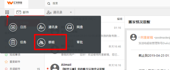 登錄郵箱web端,點(diǎn)擊菜單欄,選擇群組