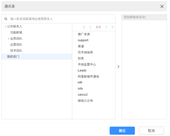 填加群組成員可以選擇公司通訊錄內(nèi)成員